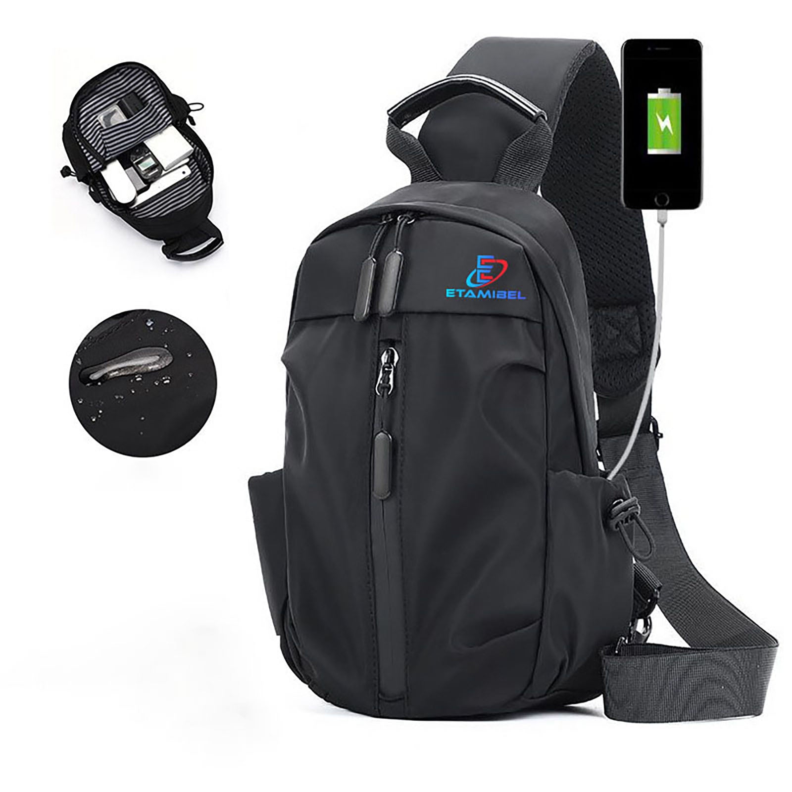 Elevate your travel and everyday style with the Etamibel Black Crossbody Chest Bag, designed for both men and women. This sleek and fashionable sling backpack is crafted from durable polyester, making it ideal for business trips, college, and tours. With an anti-theft design, you can confidently carry your essentials securely. The versatile, unisex style seamlessly fits various occasions, ensuring you stay organized and stylish whether you're commuting in the city or exploring new destinations. With its convenient USB port, this crossbody bag ensures your devices are always charged, keeping you connected on the go.