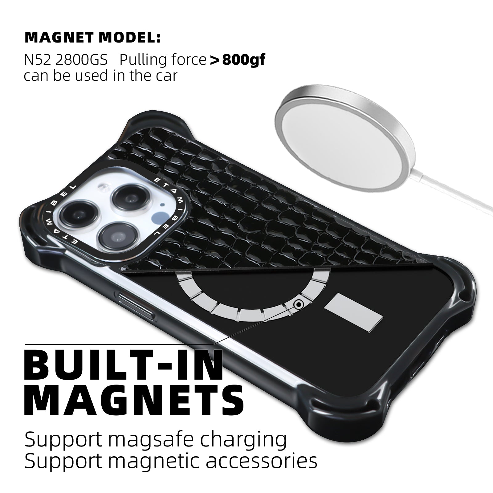 v MagSafe Compatibility and Built-In Magnet: Incorporating a powerful magnet with a pull strength of over 800gf, this case supports MagSafe charging and magnetic accessories, offering convenience and compatibility for users on the go.